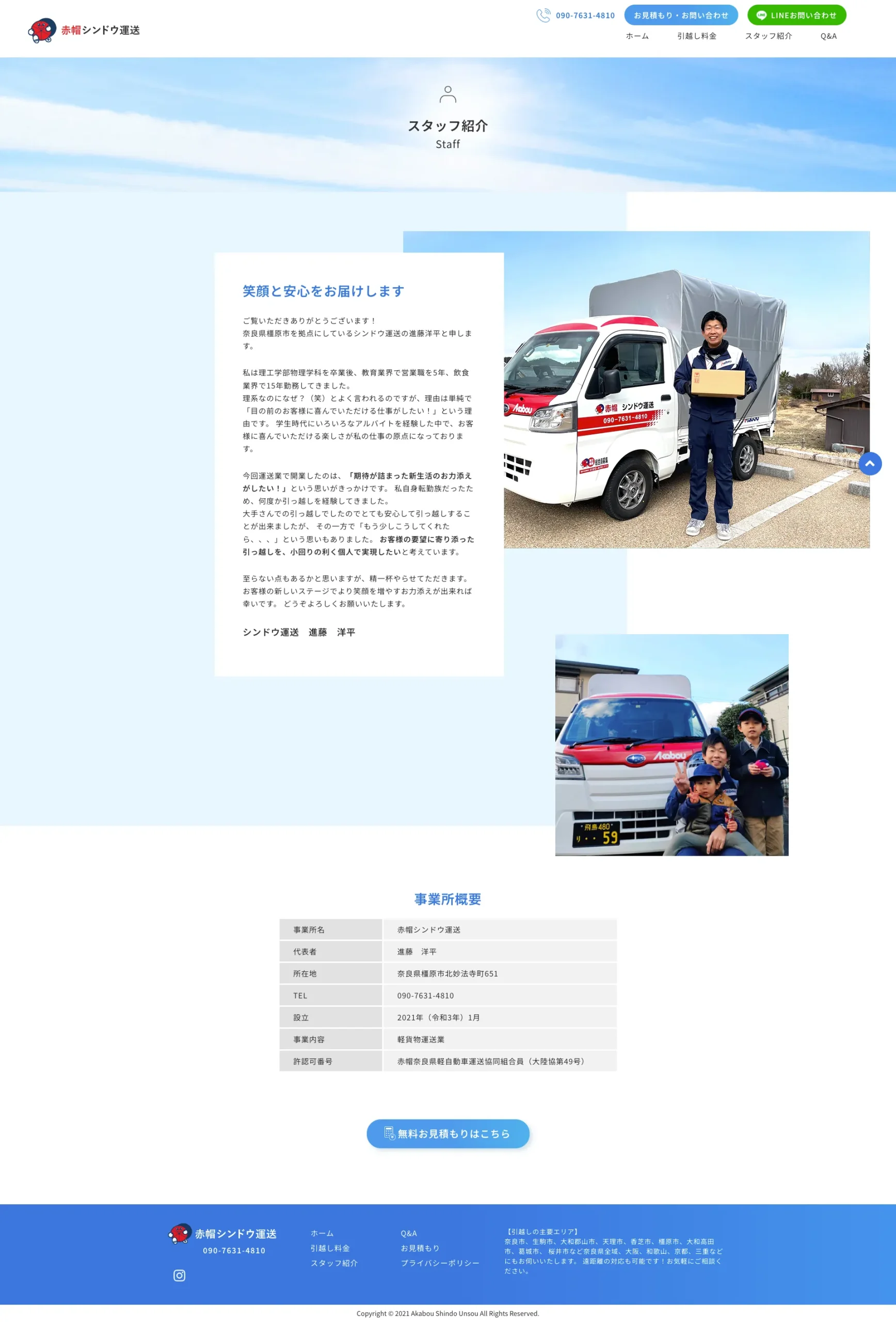 単身引越し業者 | ホームページ 2025 12/08 シンドウ運送様 単身引越し業の開業に伴い、ホームページを作成させていたしました。構成からデザイン、写真撮影、コーディングまですべてを担当し、ユーザーフレンドリーなサイトを制作しました。 https://shindo-unsou.com Web Homepage URLをコピーしました! フラワーショップ | ホームページ 一級建築士事務所 | ホームページ